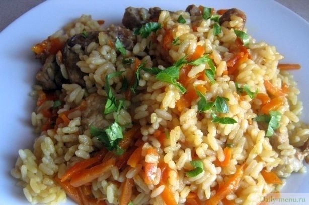 свинина вырезка, рис белый, морковь, лук репчатый, чеснок, масло подсолнечное, соль поваренная пищевая