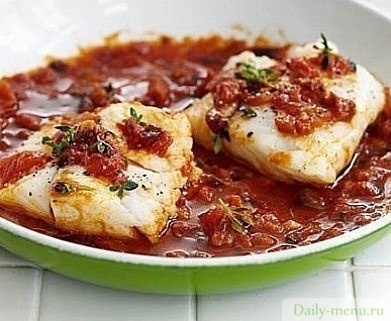 треска, йогурт 1,5% , помидоры, шампиньоны, лук репчатый, сыр твердый (маасдам)