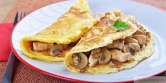 яйцо куриное, шампиньоны (hortex), лук репчатый, молоко 2,5% , масло подсолнечное