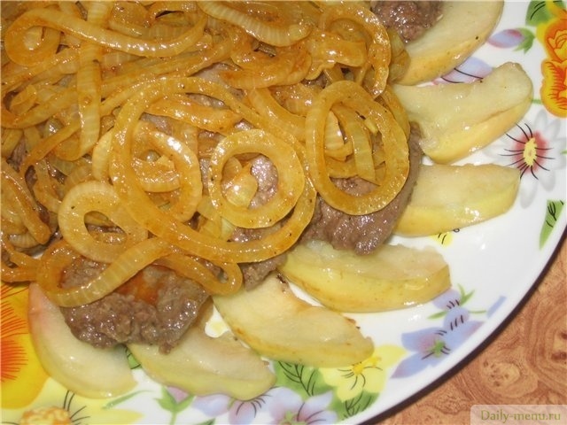 печень куриная, лук репчатый, яблоки, масло сливочное 82%
