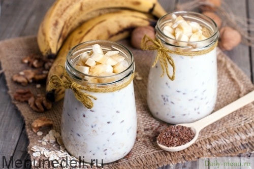 ряженка, 4%, банан, овсяные хлопья геркулес, орех грецкий
