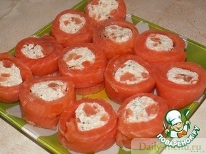 филе лосося без кожи, сыр "альметте", сыр мягкий (моцарелла), рис отварной, укроп и другие пряные травы