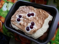 творог 4%, яйцо куриное, кефир 3,2% жирности, черешня, сахар-песок, мука пшеничная , отруби овсяные, сметана 18% жирности, какао-порошок, корица, пищевая сода, масло топленое, лимонная кислота