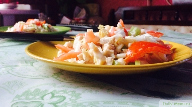 Салат с кальмаром и курицей