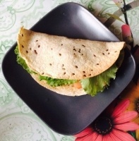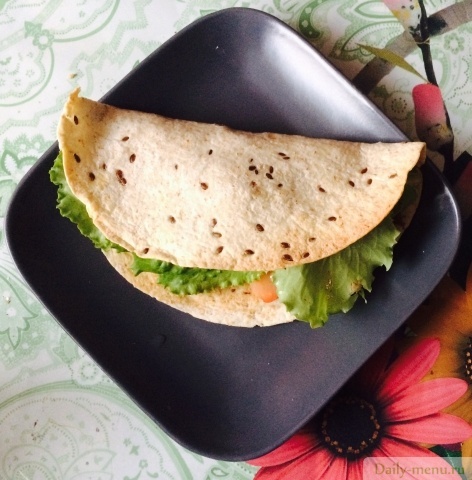 индейка, грудка без кожи, mission deli пшеничные лепёшки со злаками, помидоры, фасоль белая первым делом, соевый соус, салат, чеснок, сыр брест-литовск легкий 35%, перец черный молотый