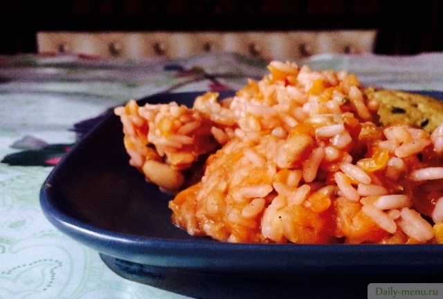соус краснодарский томатный, рис белый, фасоль белая первым делом, морковь, лук репчатый, чеснок, лавровый лист