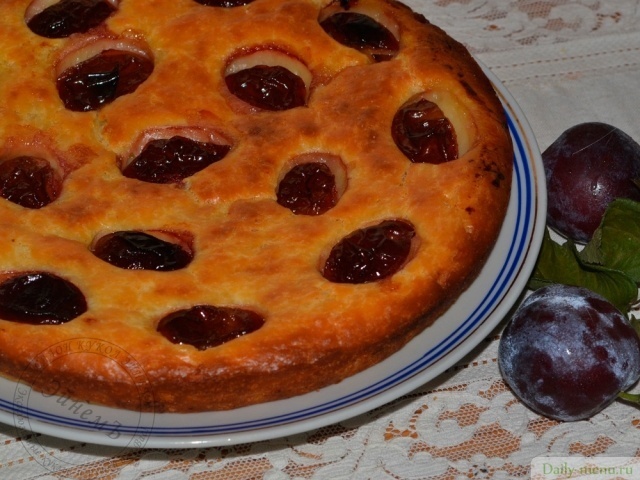 мука пшеничная берендеевка, кефир 1% жирности, масло сливочное 72%, слива, сахар-песок, яйцо куриное, пищевая сода