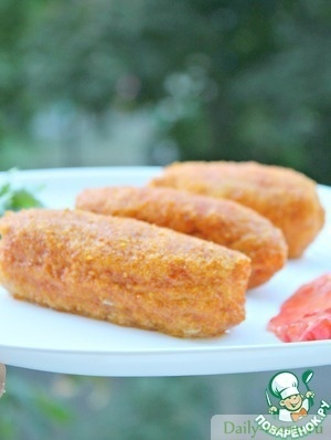 курица филе, без кожи, творог, 18 % , сухари панировочные, масло сливочное 72%, укроп и другие пряные травы, паприка сушёная, молотая, куркума