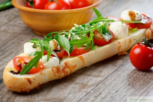 Брускетта с моцареллой, базиликом и томатами. Фото: shutterstock