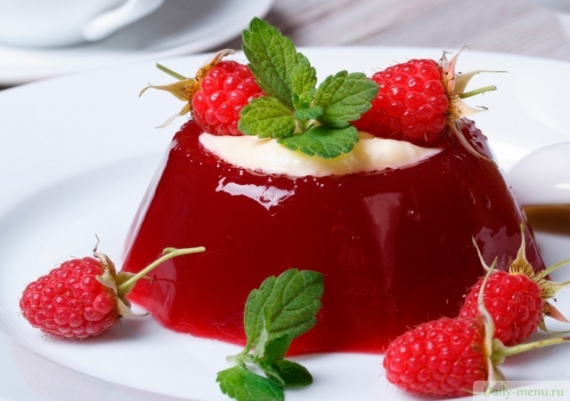 Малиновое желе с мятой и сливками