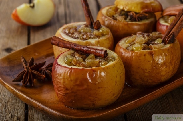Запеченные яблоки с изюмом, медом, орехами, корицей