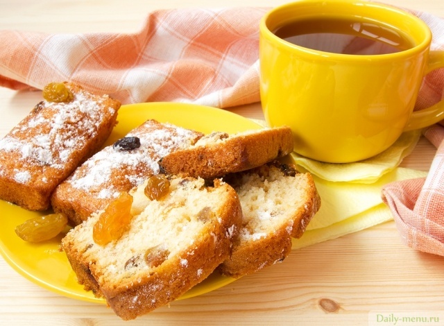 яйцо куриное, мука пшеничная , масло сливочное 72%, лимон, сахар-песок, изюм, разрыхлитель теста