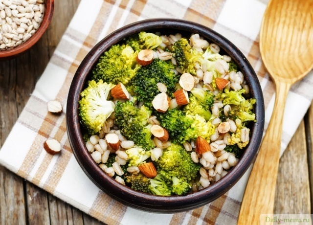 Брокколи с перловкой и миндалем