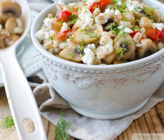 Перловая каша с шампиньонами и болгарским перцем