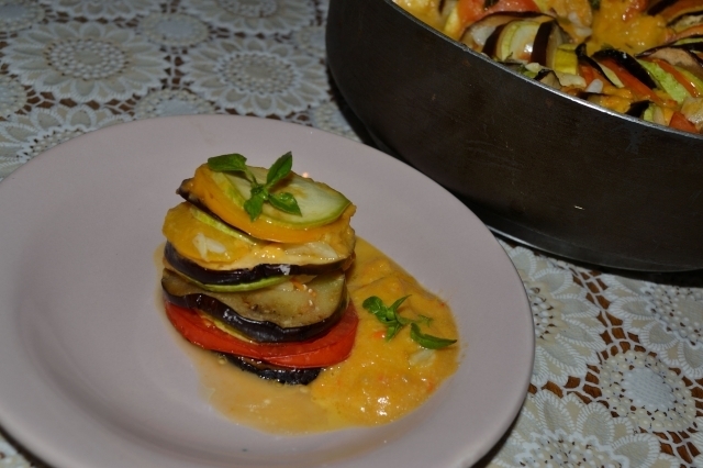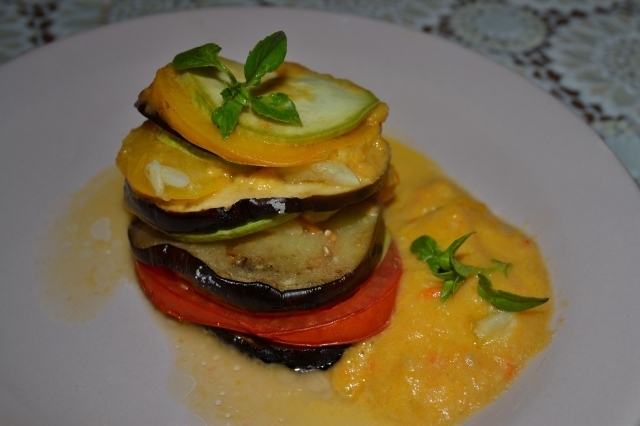 помидоры, кабачок, баклажаны, перец красный сладкий, лук репчатый, масло оливковое, чеснок