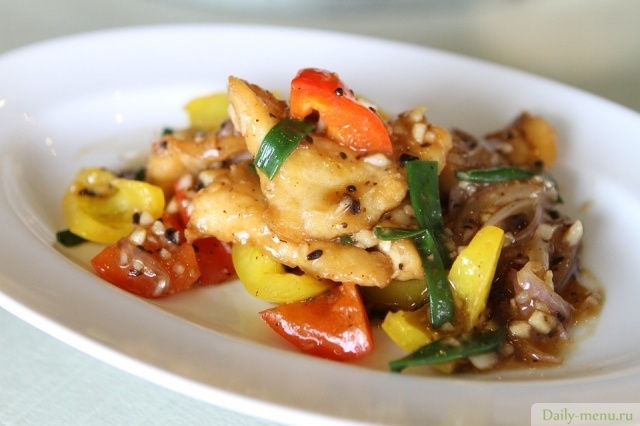 тилапия, перец сладкий, яйцо куриное, лук репчатый, лук зеленый, сухари панировочные, масло оливковое, соль поваренная пищевая, паприка сушёная, молотая, чеснок, шафран, перец черный молотый