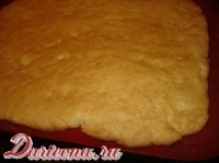 2. Тесто сразу же выложить на противень и разровнять руками, смоченными водой.
