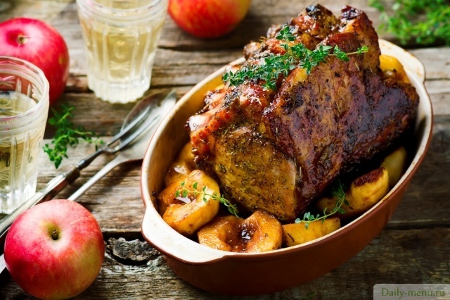 Свиная шея, фаршированная яблоками. Фото: depositphotos