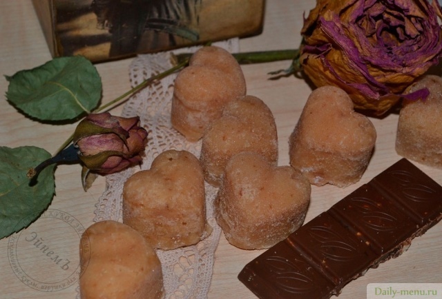 На подготовленную заблаговременно тарелку либо же в силиконовые формочки вылить сахарную массу и дать остыть. Затем либо разломать на кусочки (если использовалась тарелка) либо вынуть из силиконовых формочек и убрать в стеклянную баночку. В данном случае, одна порция равна одному сахарному сердечку, а было их 15 штук.