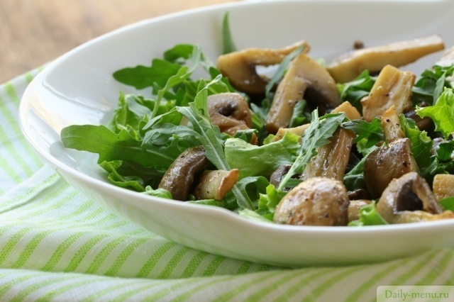 Салат из руколы с грибами и печенью. Фото: depositphotos