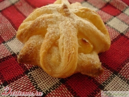 слоеное тесто бездрожжевое, молоко 2,5% , сахар-песок, яичный желток куриный, мука пшеничная , сахарная пудра, ванилин