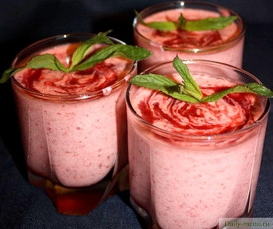 клубника обыкновенная, сливки 33%, вода, листья мяты, желатин пищевой, сахар-песок