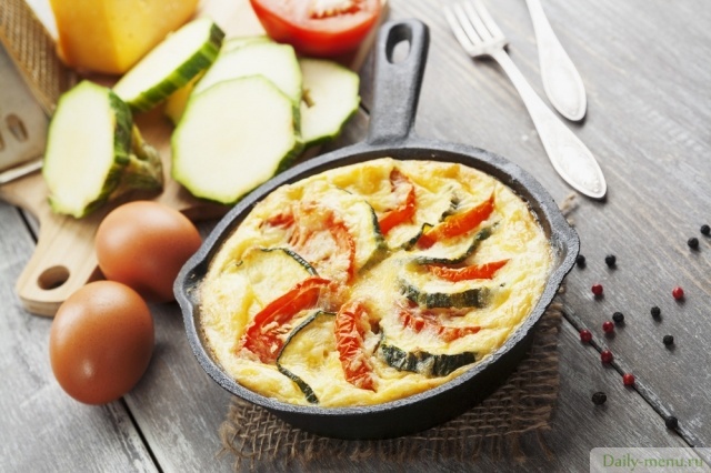 яйцо куриное, цуккини, помидоры, молоко 2,5% , сыр пармезан, масло оливковое, соль поваренная пищевая