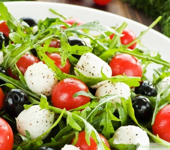 помидоры черри, сыр моцарелла, маслины крупные, масло оливковое, базилик свежий, сок лимонный, прованские травы