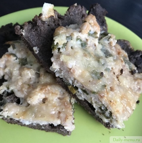 куриный фарш, мука льняная, яйцо куриное, вода, лук зеленый, сыр полутвердый (голландский), масло горчичное, соль поваренная пищевая, пищевая сода