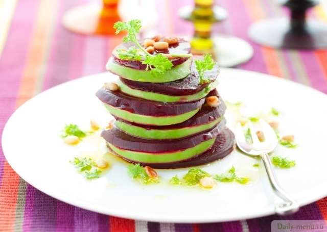 свекла, авокадо, петрушка, масло оливковое, орех кедровый