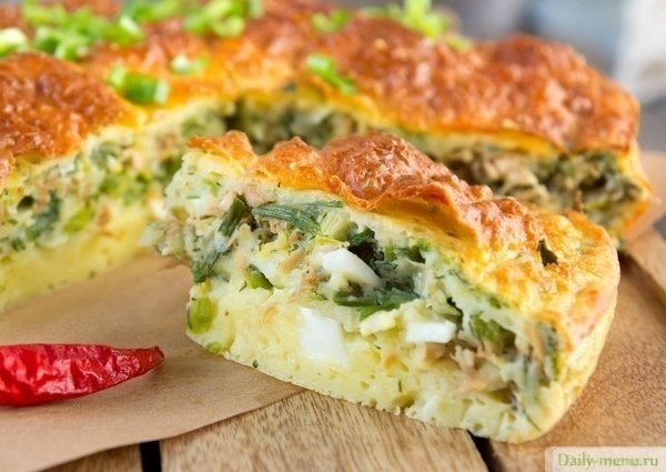 яйцо куриное, кефир 1.5%, мука пшеничная , тунец натуральный консервы, лук зеленый, соль поваренная пищевая, пищевая сода