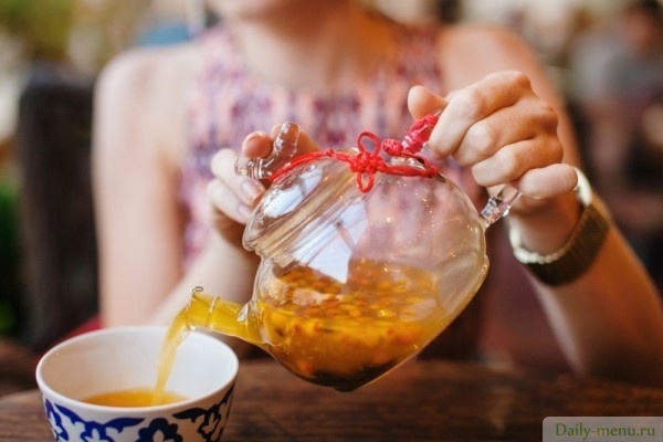 вода, облепиха, фруктовый сироп, имбирь корень, мята свежая, гвоздика, перец чили