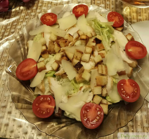 Салат "Цезарь" из запечёной куриной грудки с соусом цезарь.