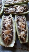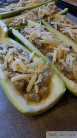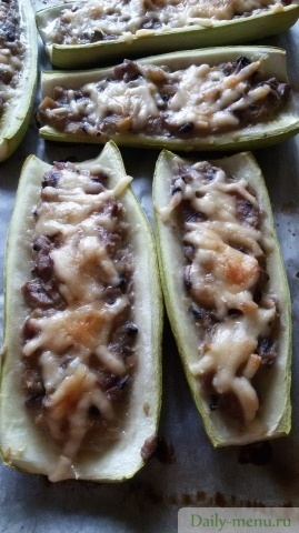 кабачок, вода, грибы шампиньоны свежие, сыр гауда, лук репчатый, сметана простоквашино 15%, мука рисовая