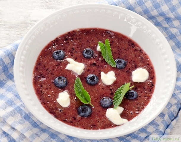 вода, черника, йогурт 3,2% , сок апельсиновый, вино полусухое, сливки, 20,0% жирности, цедра апельсиновая, корица, гвоздика, кардамон