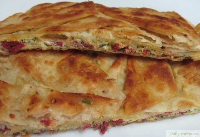 лаваш армянский, тонкий, яйцо куриное, сыр голландский, ветчина особая, масло топленое, укроп и другие пряные травы