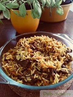 рис длиннозёрный, морковь, лук репчатый, белый гриб сушеный, масло подсолнечное