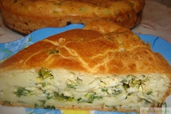 Заливной пирог с зеленым луком и яйцом