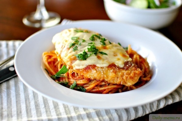 курица филе, без кожи, сыр пармезан, сыр моцарелла, сухари панировочные, яйцо куриное, масло оливковое, чеснок сушеный, соль поваренная пищевая, перец черный молотый