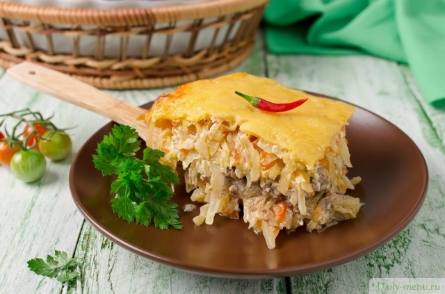 Капустно-мясная запеканка под сыром