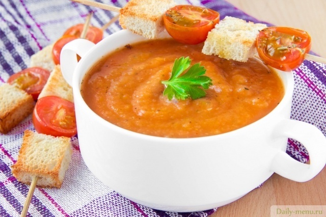 тыква, вода, помидоры, помидоры черри, хлеб пшеничный, лук репчатый, морковь, сливки, 20,0% жирности, масло оливковое, чеснок, соль поваренная пищевая, перец черный молотый, прованские травы, карри