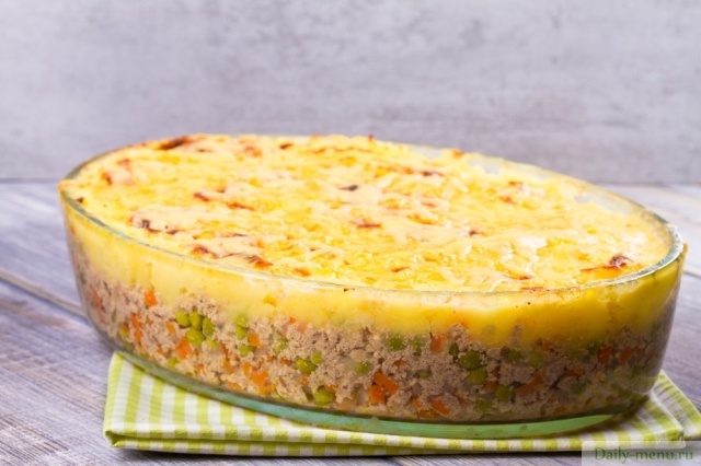 бараний фарш, картофель, морковь, лук репчатый, горошек замороженный, сыр голландский, молоко 2,5% , вода, масло сливочное 72%, соус томатный острый, масло оливковое, яйцо куриное, мука пшеничная , чеснок, соль поваренная пищевая, розмарин, красный острый перец, перец черный молотый
