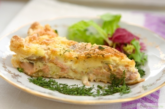 слоеное тесто бездрожжевое, лосось атлантический (семга), сыр голландский, сливки, 10,0% жирности, яйцо куриное, сыр моцарелла, соль поваренная пищевая, перец черный молотый