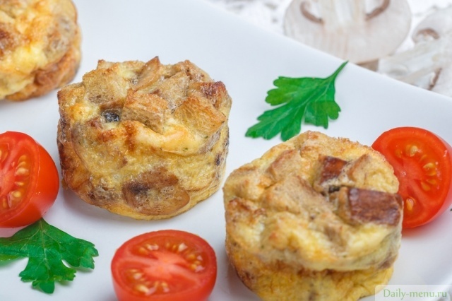 яйцо куриное, молоко 3,2% , шампиньоны, сыр голландский, хлеб ржано-пшеничный, масло оливковое, масло сливочное 72%, соль поваренная пищевая
