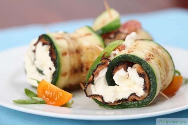 цуккини, творог 11%, бекон, сметана 18% жирности, масло оливковое, чеснок, соль поваренная пищевая