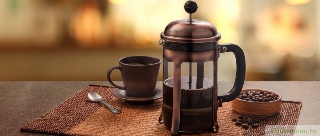 Налить немного кипятка во френч-пресс и кружку, из которой пить кофе (на 1-2 минуты), чтобы нагреть посуду. Вылить кипяток из френч пресса, добавить в него 18 грамм свежемолотого кофе (примерно 2 столовых ложки без горки). Это рассчет на одну кружку 250-300мл. Залить кипятком. Перемешать ложкой, закрыть. Поршень оставить вверху, не опускать. Дать постоять 3-4 минуты. Плавно опустить поршень. Вылить кипяток из кружки, налить туда кофе. Важно. Фрэнч-пресс должен быть наполнен полностью, поэтому чтобы сделать одну чашку используйте маленький френч-пресс.