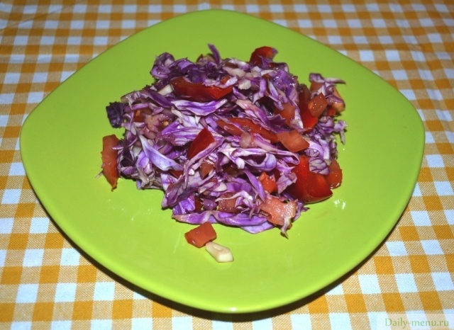 Салат из краснокочанной капусты с помидорами и перцем