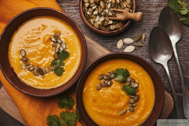 тыква, сливки 30% жирности, масло сливочное 72%, семя тыквы, соль поваренная пищевая, имбирь порошок, корица