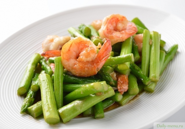 спаржа, креветки очищенные, масло оливковое, чеснок, соль поваренная пищевая, сок лимонный