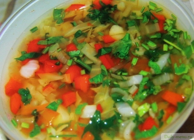 вода, капуста белокочанная, сельдерей черешковый, лук репчатый, помидоры, перец сладкий, масло подсолнечное, соль поваренная пищевая